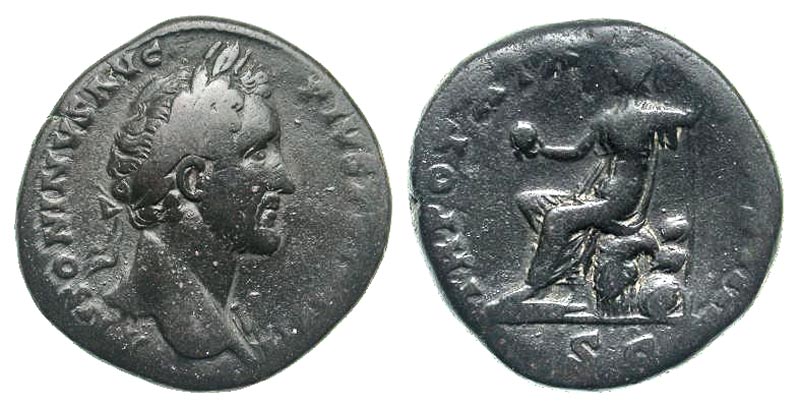 Lot 47-141. Antoninus Pius. A.D. 138-161. AE sestertius. Rome mint, struck A.D. 155-156. Scarce.