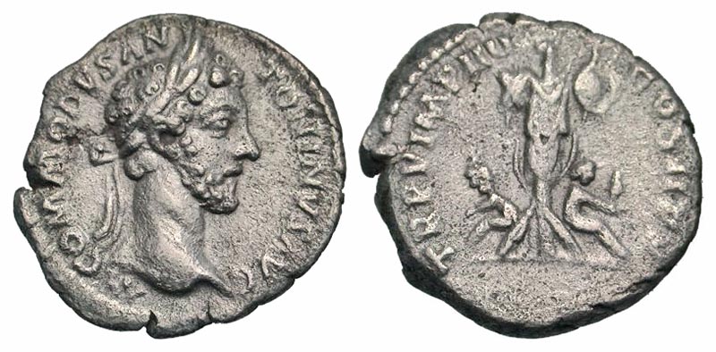 Lot 47-155. Commodus. A.D. 177-192. AR denarius. Rome mint, struck A.D. 180.