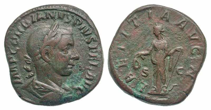 Lot 47-175. Gordian III. A.D. 238-244. AE sestertius. Rome mint, struck A.D. 240.
