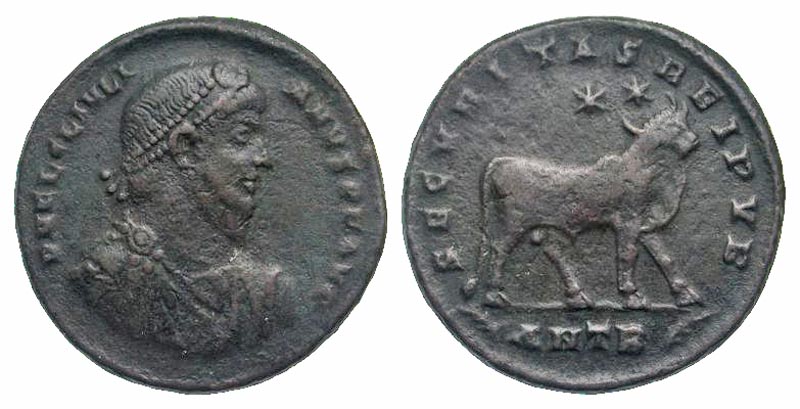 Lot 47-188. Julian II. A.D. 360-363. AE follis. Antioch mint, struck A.D. 361-363.