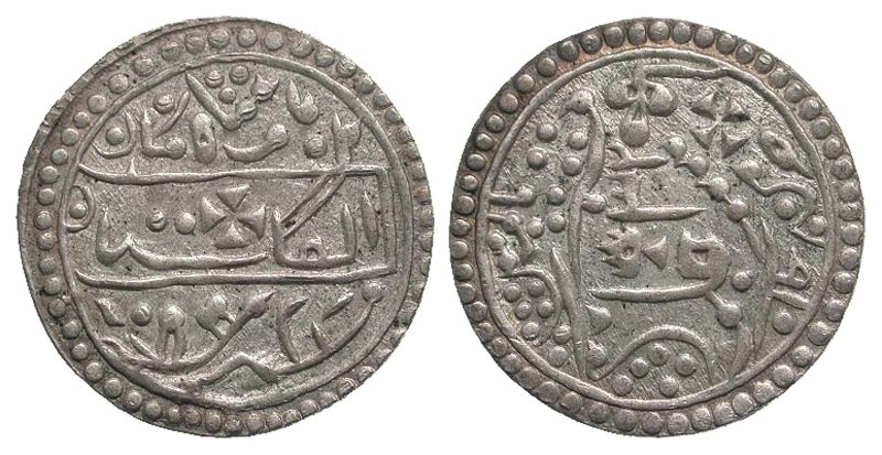 Lot 47-232. India, Princely States. Kotah. Chattar Singh. 1866-1889. AR Nazarana rupee. Nangaon mint, Year 32 (A.D. 1888). In the name of Queen Victoria.