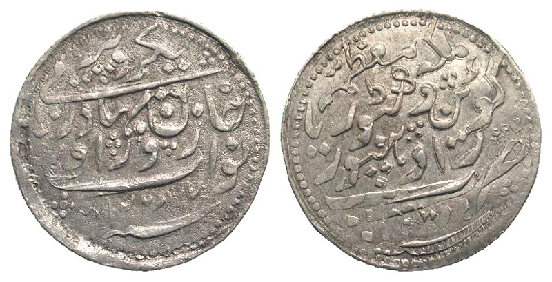 Lot 47-235. India, Princely States. Radhanpur. Zorawar Khan. 1825-1874. AR rupee. Dated 1871/AH 1287.