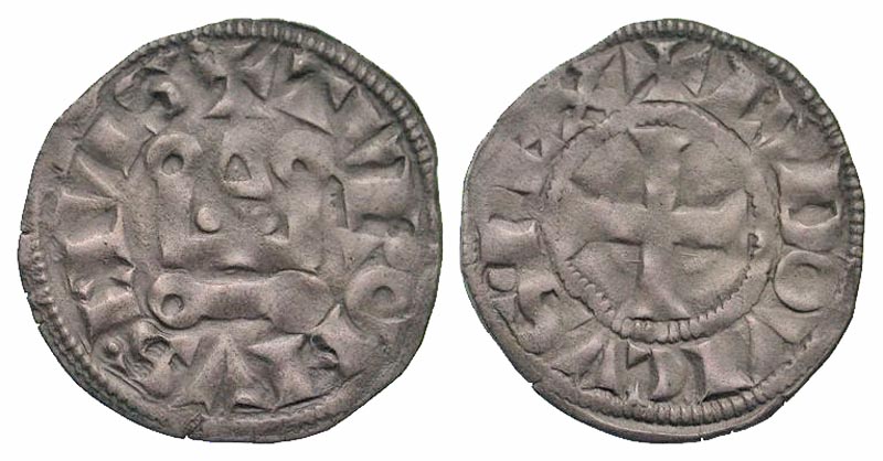 Lot 47-241. France, Royal. Louis IX. 1226-1270. AR Denier Tournois. Scarce legend variation.