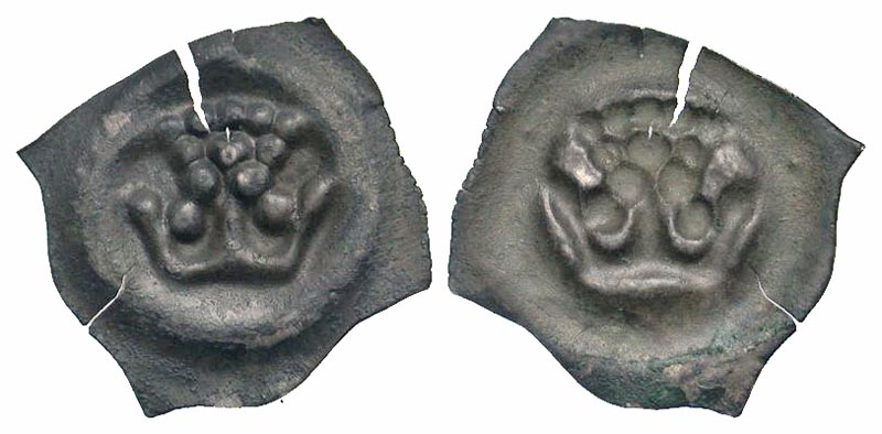 Switzerland, Zofingen. Herzog Albrecht III. 1386-1395. AR vierzipfliger bracteate pfennig (15.7 mm, 0.21 g, 12 h). Scarce. Crown / Incuse of the obverse. HMZ 1-160a; Wüthrich 142. Toned aVF.