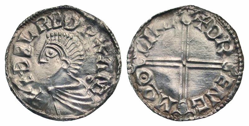 Lot 47-258. Anglo-Saxon, Kings of All England. Aethelred II. 978-1016. AR penny. Lincoln mint. Dreng, moneyer.