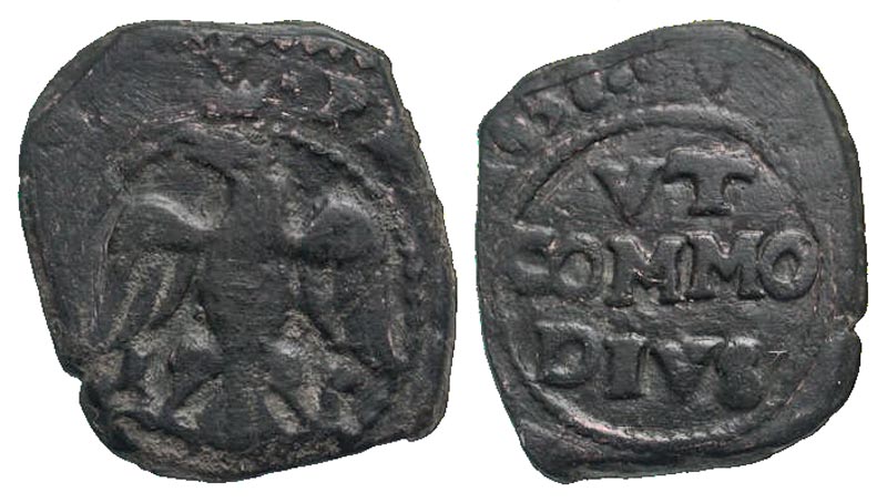 Italian States, Sicily. Philip II of Spain. 1556-1598. AE 1 grano (18.4 mm, 3.24 g, 12 h). Messina mint, 1556. Crowned eagle facing left / VT/COMMO/DVS, legend in three lines. Spahr 121. aVF.