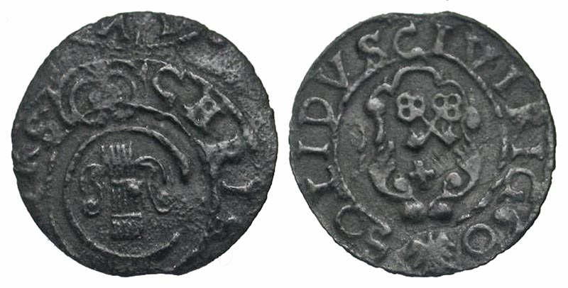 Latvia, Riga. Christina. 1632-1654. BI solidus (15.7 mm, 0.42 g, 11 h). 1660. Crowned C with vasa badge / Crossed keys. AAJ 73 var. Toned VF. Apparently unpublished date.