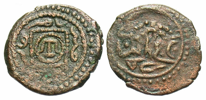 Giray Khans. Hajji Giray I. 824-871/1420-1466. AE manghir (16.1 mm, 1.54 g, 12 h). Qyrk-yir (Aqiran Aquira) mint, dated A.H. 857. Krim tamgha in beaded circle within beaded square. Mint and date around / "al Sultan Hajji Giray". Album 2068A; K. Kkromov "Copper Coins of Hajji Giray", Numismatika i Faleristika, 19+7, #3. aEF, choice. Extremely rare, one of only a few specimens known. Ex Markov sale #9, lot 222j. This coin is cited in Album's Checklist of Islamic Coins.The reverse of this coin was struck with the same obverse die as Retowski pl. 1, 33.Qyrk-yir was a fortress just above Bagchih-Serai.