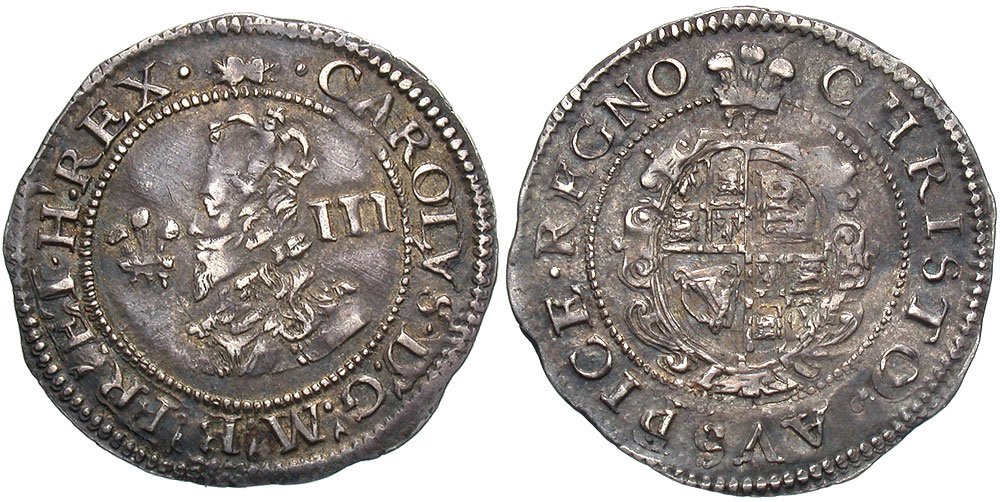 Lot 48-323. England. Charles I. 1625-1649. AR threepence. Aberystwyth, 1638/9-1642.