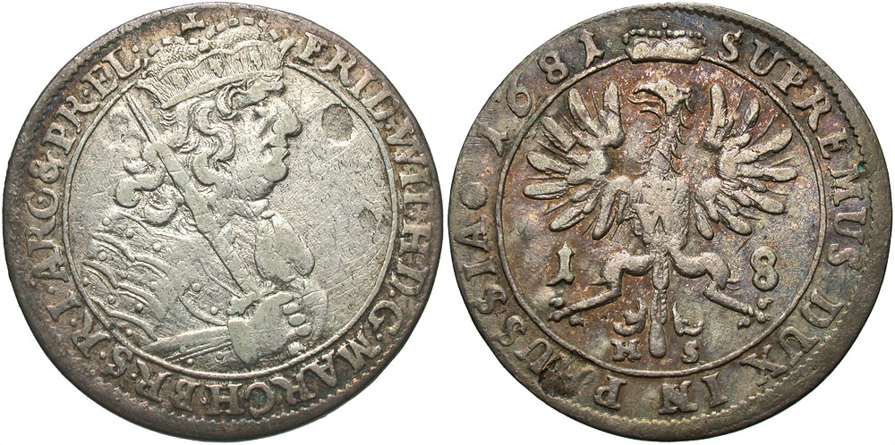 Lot 48-337. German States, Brandenburg. Friedrich Wilhelm. 1681-HS. AR 18 groscher.