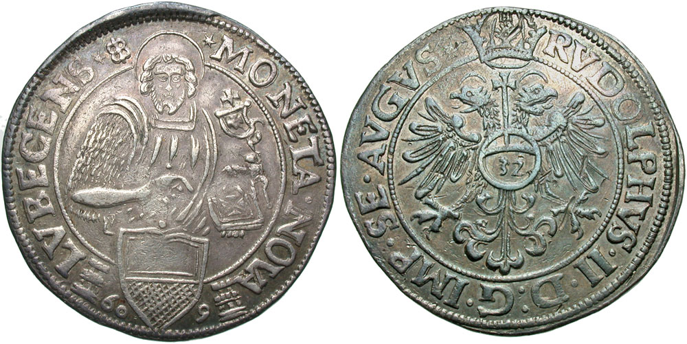 Lot 48-339. German States, Lubeck. [1]609. AR thaler. Rare date. Ex Album 20 (18 September 2014), 2354.