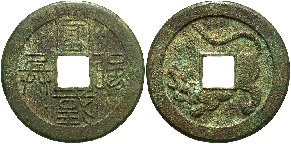 Japan. Mito (Hitachi). ND (1867). 50 mon (33 mm, 8.94 g). Fu Koko Kyo Hei ("Rich nation, strong army") / Tiger. INDA 4. VF, surfaces a little porous.