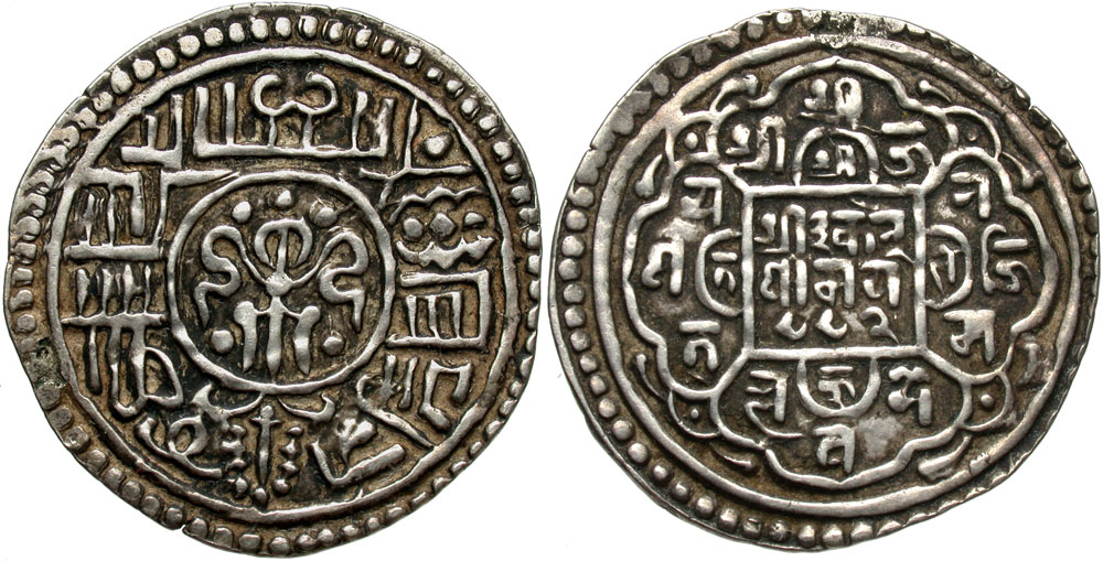 Nepal, Kingdom of Patan. Ranajit Malla. 1762-1763. AR mohar (29 mm, 5.36 g). N.S. 882 (1762). KM 427. VF, toned, bold strike.