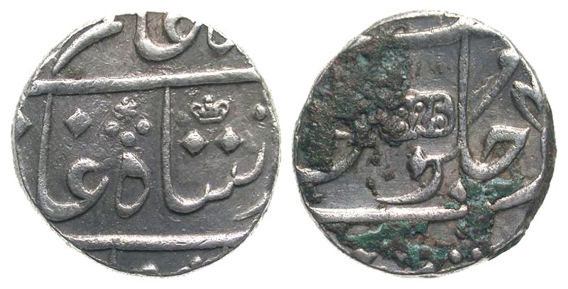Lot 49-192. India, East India Company. Bombay presidency. in the name of Shah Alam II. 1825, RY 4(6). AR rupee. Surat Mint.