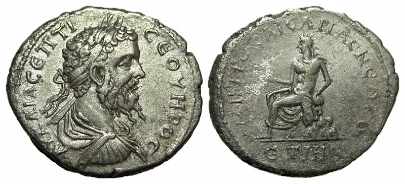 Cappadocia, Caesareia-Eusebia. Septimius Severus. A.D. 193-211. AR tridrachm (25.7 mm, 6.93 g, 12 h). Year 18=A.D. 210. AY KAI Λ CЄΠTI CЄOYHPOC, laureate, draped and cuirassed bust right / MHTPO KAICAPIAC NEOKO, radiate male figure seated left on Mt. Argaeus, holding branch; ЄT IH in exe. Sydenham Supp. 403b . EF/VF, Very Rare type. Ex H.J. Berk.