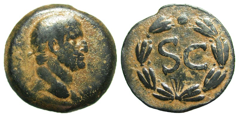 Syria, Seleucis and Pieria. Antiochia ad Orontem. Galba. A.D. 68-69. AE as (28.8 mm, 13.67 g, 1 h). [IM SER SVL GALBA CAE], laureate head right / SC within laurel wreath, pellet above. RPC 4314; McAlee 312c. VF, Red, Syrian patina.