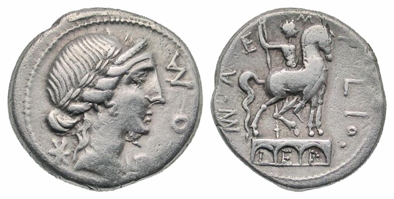 Lot 50-107. Mn. Aemilius M.f. Lepidus. 114-113 B.C. AR denarius. Rome mint.