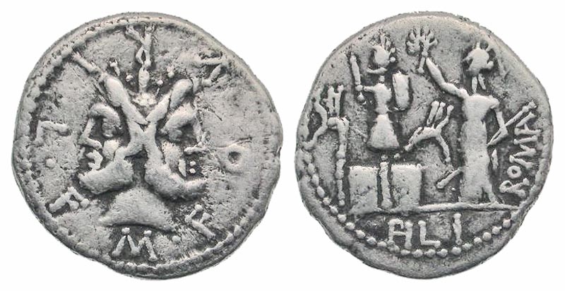 Lot 50-110. M. Furius L.f Philus. 119 B.C. AR denarius.