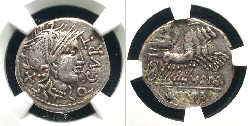 Lot 50-111. Q. Curtius. 116-115 B.C. AR denarius. Rome mint.