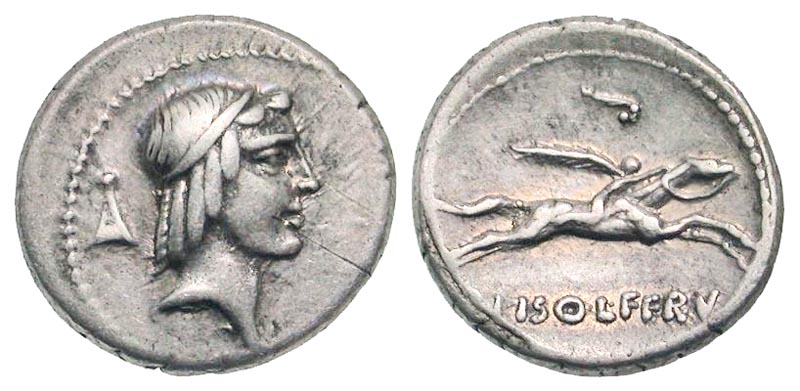 Lot 50-114. C. Calpurnius Piso L.f. L.n. Frugi. 61 B.C. AR denarius. Rome mint. Very Rare. Ex RBW collection (not in previous sales); Ex HJ Berk.