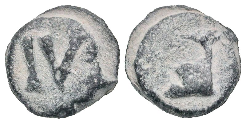 Anonymous. 1st century B.C. - 1st century A.D. PB tessera (16.8 mm, 4.16 g, 6 h). IV / Dolphin?. VF.