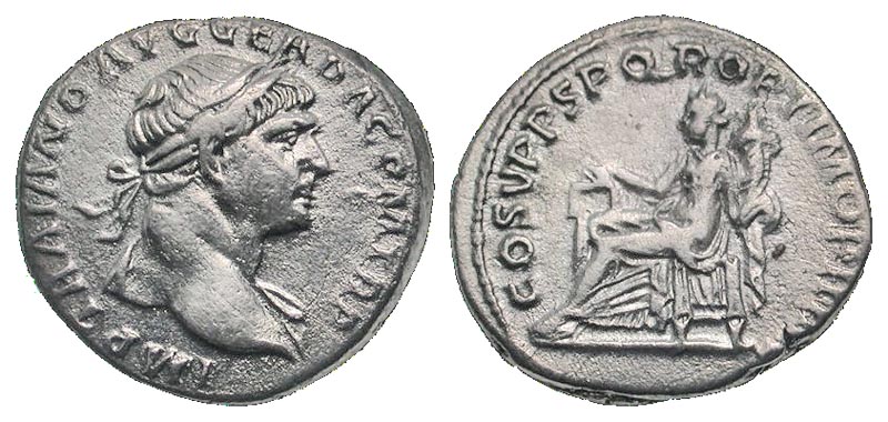 Lot 50-128. Trajan. A.D. 98-117. AR denarius. Rome mint, struck A.D. 107-111.