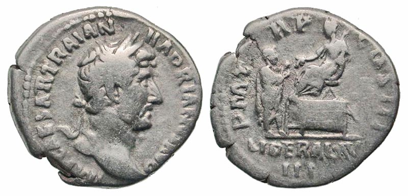 Lot 50-141. Hadrian. A.D. 117-138. AR denarius. Rome mint, struck A.D. 119-125.