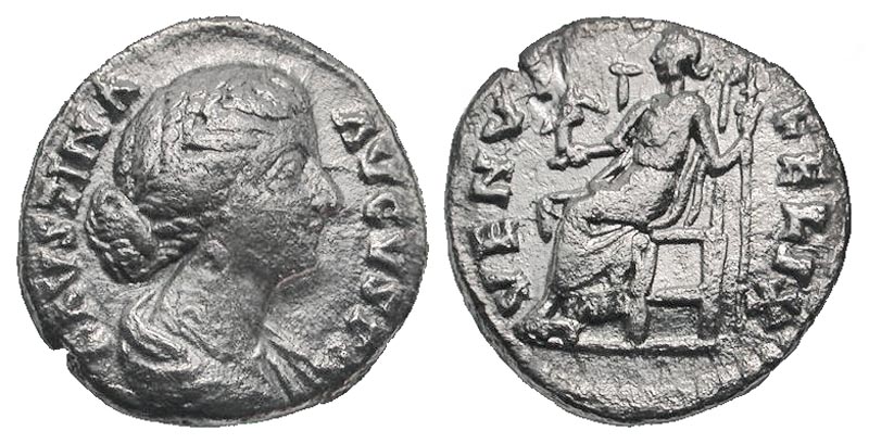 Lot 50-150. Faustina II. Augusta, A.D. 147-175. AR denarius. Rome mint, struck A.D. 161-175.