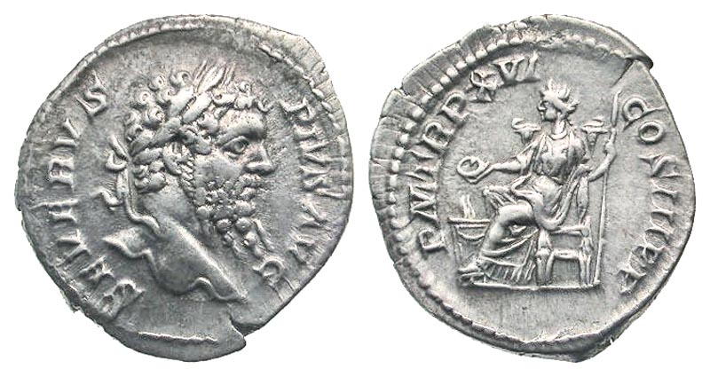 Lot 50-157. Septimius Severus. A.D. 193-211. AR denarius. Rome mint, struck A.D. 208.
