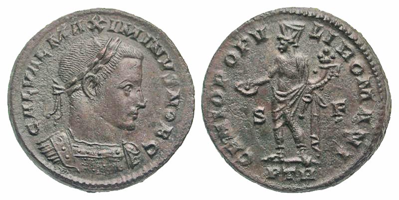 Lot 50-174. Maximinus II Daza. A.D. 309-313. AE follis. Trier mint, struck A.D. 305-307.