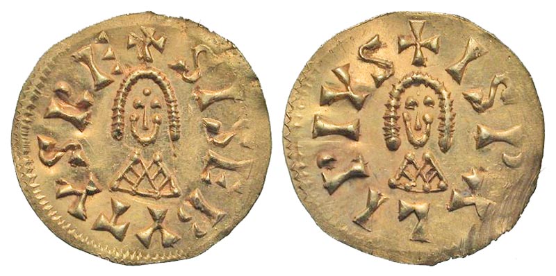 Visigoths. Sisebut. 612-621. AV tremis (19.4 mm, 1.46 g, 7 h). Ispalis (Seville) mint. + SISEBVTVS RE, bust facing / + ISPALI PIVS, bust facing. CNV 219; Miles 187a; MEC 1. EF.