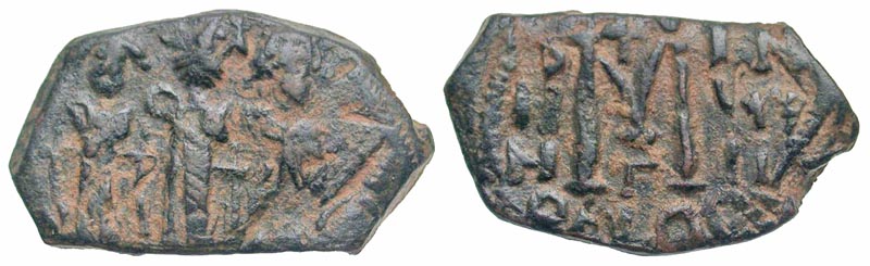 Lot 50-186. Heraclius. 610-641. AE follis. Cyprus mint, dated RY 18 = 627/628.
