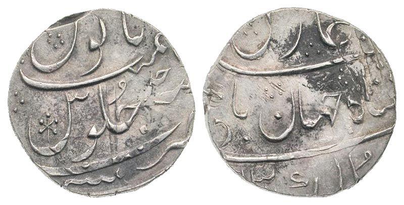 Lot 50-196. India, Mughal. Shah Jahan II 1613-1835. AR rupee. Mumbai mint. Rare