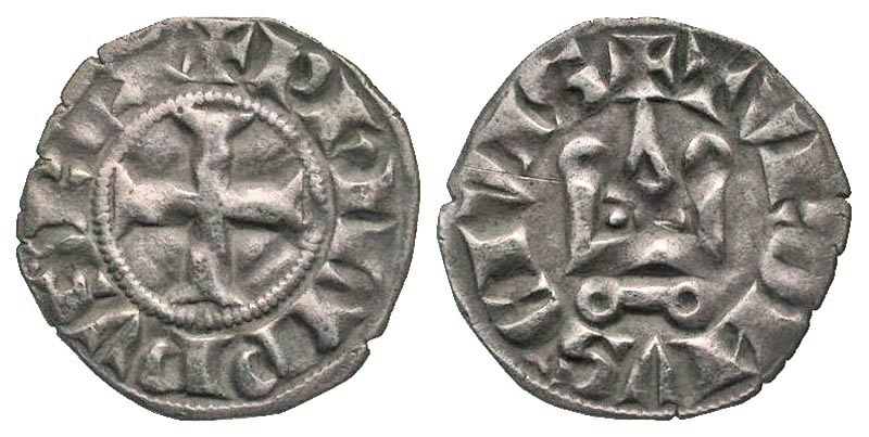 France. Philip IV le Bel. 1285-1314. AR denier tournois a l'O rond (18.2 mm, 0.90 g, 10 h). + PHILIPPVS REX, cross pattée / + TVRONVS CIVIS , châtel tournois. Duplessy 223; Ciani 224; Roberts 2416. gVF.