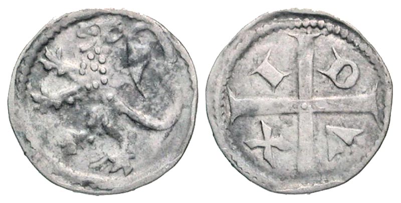Lot 50-228. Low Countries, Brabant. Jan I. 1268-1294. AR denier. Leuvain mint.