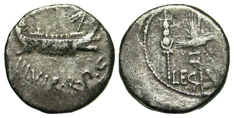 Lot 6-191. Mark Antony. 32-31 B.C. AR denarius. Patrae (?), 32-31 B.C.