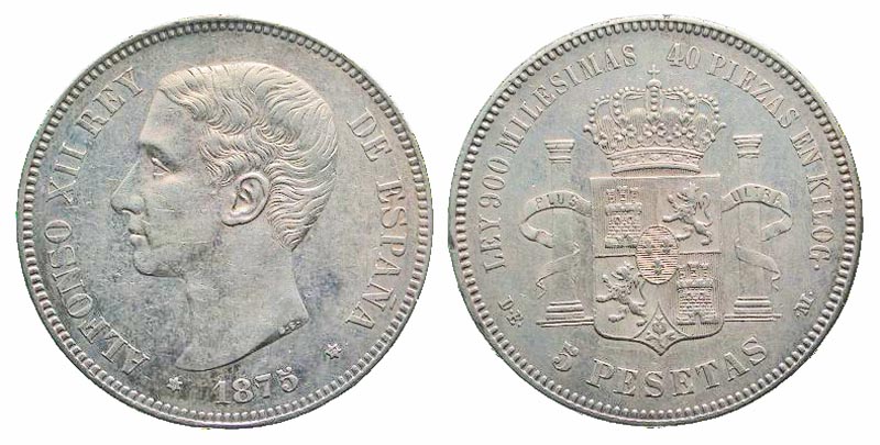 Lot 50-269. Spain. Alfonso XII. 1874-1885. AR 5 pesetas. Madrid mint, 1875.