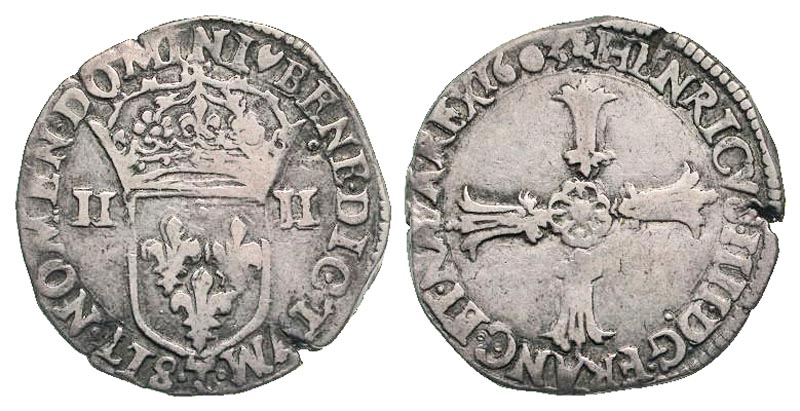 Lot 50-273. France. Henri IV. 1589-1610. AR 1/4 ecu. Nantes mint, 1603.