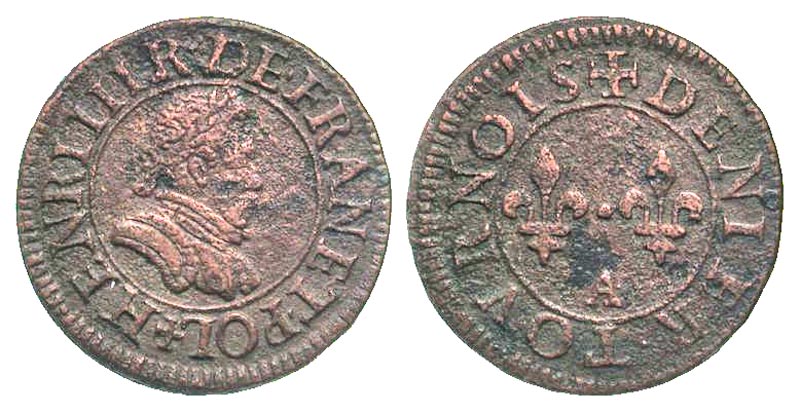 Lot 50-274. France. Henri IV. 1589-1610. AE denier tournois.