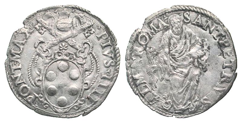 Lot 50-293. Italy, Papal States. Pius IV (Giovannangelo de'Medici). 1559-1565. AR giulio. Rome mint.