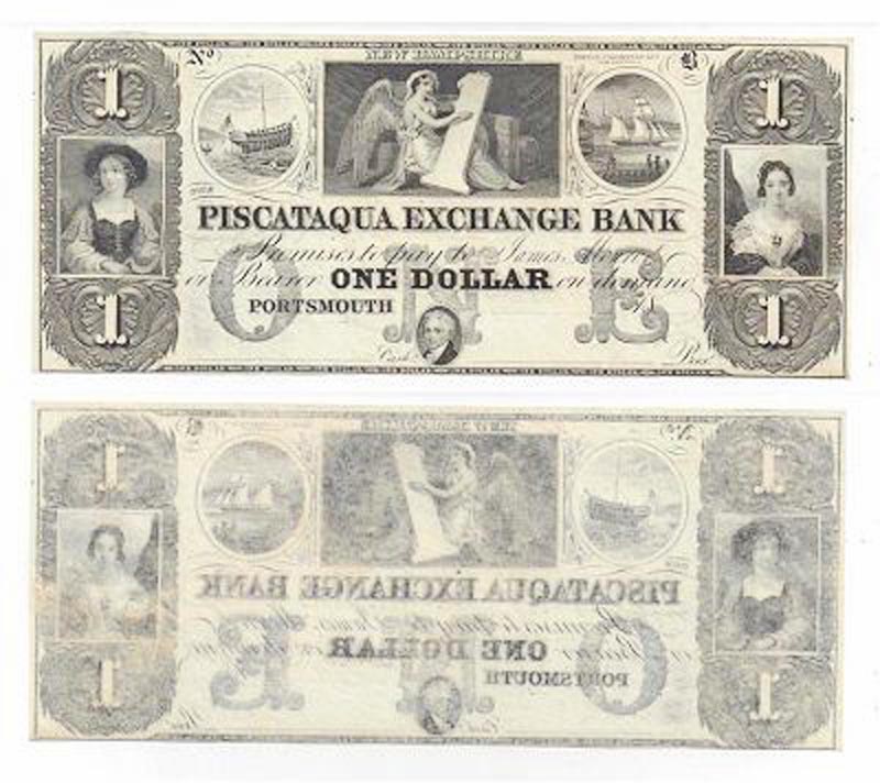 Lot 50-310. Obsolete Note: Piscataqua Exchange Bank, Portsmouth, New Hampshire, $1. Crisp uncirculated.