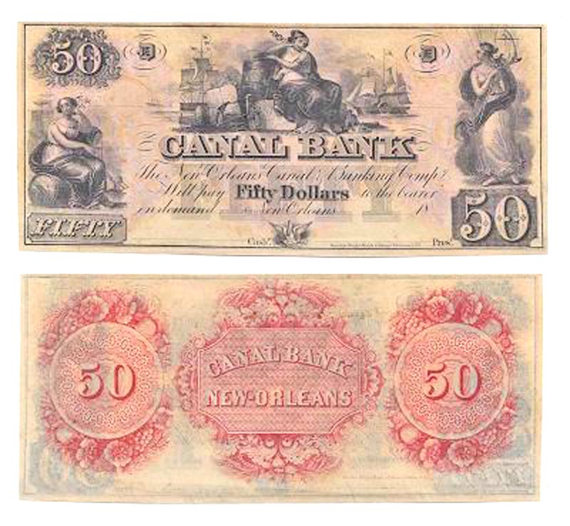 Lot 50-319. Obsolete Note: Canal Bank, New Orleans, Louisiana, $50. Crisp uncirculated.