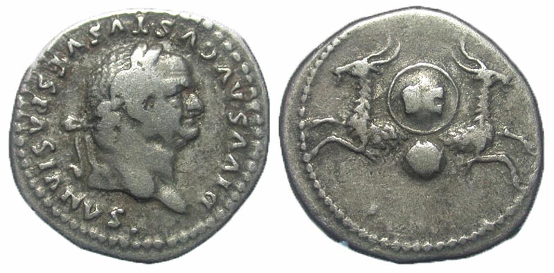 Lot 6-217. Divus Vespasian. Died A.D. 79. AR denarius. Rome, A.D. 80-81.