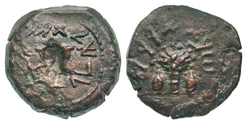 Lot 51-079. Judaea. First Jewish War. 66-70 C.E. AE 1/8 shekel. Dated year 4 = A.D. 69.