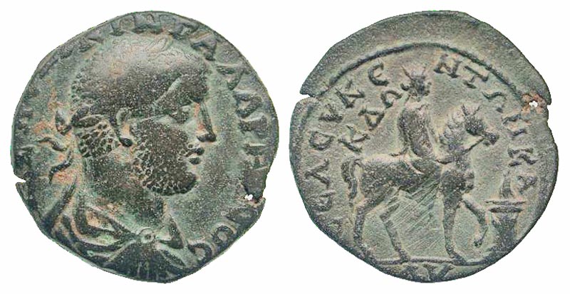 Cilicia, Seleuceia ad Calycadnum. Gallienus. A.D. 253-268. AE 27 (27.0 mm, 9.40 g, 6 h). AVK Π ΛIKIN ΓAΛΛIHNOC, laureate, draped and cuirassed bust right / CEΛEVKEΩN KAΛVKA-ΛY-KΔΩ, radiate god on horseback right, altar before. SNG Levante supp. 215; cf. SNG France 784 (Valerian I). VF. Rare.