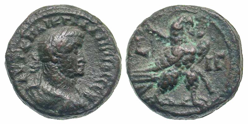 Egypt, Alexandria. Gallienus. A.D. 253-268. BI tetradrachm (21.0 mm, 9.47 g, 11 h). Dated RY 13 = A.D. 265/6. AK Π Λ IOV ΓAΛΛIHNOC EVEVC, laureate and cuirassed bust right / L-IΓ, eagle standing right, wreath in its beak, with wings closed; palm behind. Milne 4117; Curtis 1585; Emmett 3806. Fine.
