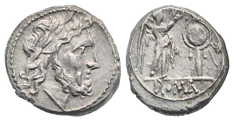 Lot 51-140. Anonymous. after 211 B.C. AR victoriatus. Rome mint.