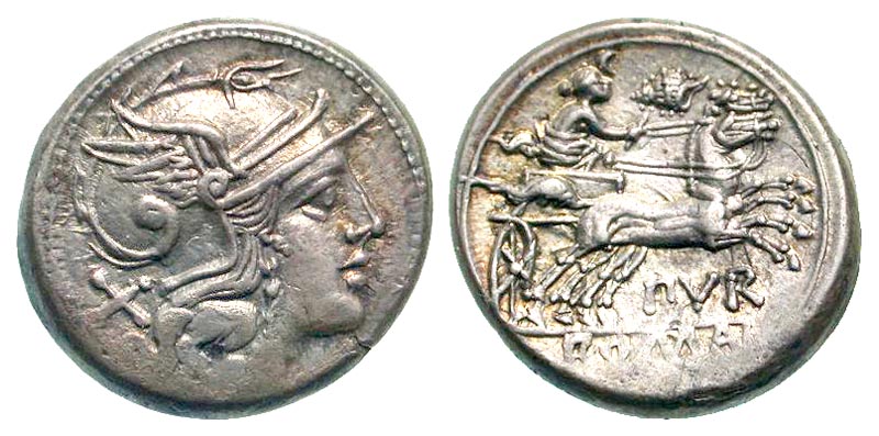 Lot 51-145. Furius Purpurio. Ca. 169-158 B.C. AR denarius. Rome mint. Rare. Ex RBW collection (not in previous sales).
