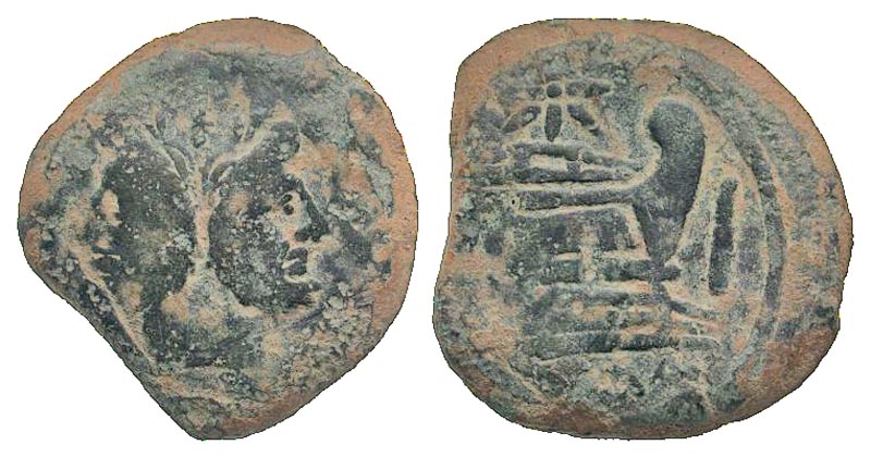 Anonymous. 169-158 B.C. AE as (32.4 mm, 20.70 g, 7 h). Rome mint. Laureate and bearded head of Janus, I above / ROMA, Prow of galley right, star above, I right. Crawford 196/1; Sydenham 264. Fine, sandy patina, chipped.