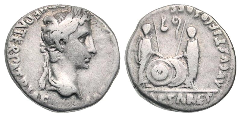 Lot 51-158. Augustus. 27 B.C.-A.D. 14 AR denarius. Lyons mint, struck 2 B.C. - A.D. 4